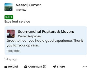 Seemanchal Packers & Movers सीमांचल क्षेत्र की एक प्रतिष्ठित और भरोसेमंद पैकर्स एंड मूवर्स कंपनी है, जो बिहार के किशनगंज, अररिया, कटिहार, पूर्णिया सहित पूरे सीमांचल क्षेत्र से भारत के सभी प्रमुख शहरों में सुरक्षित, तेज़ और किफायती शिफ्टिंग सेवाएँ प्रदान करती है।
